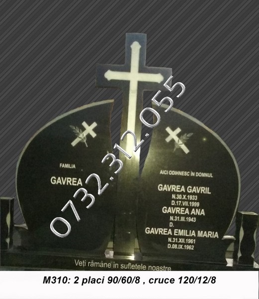 • Cruci marmura sau cruci granit sunt compuse din placa/placi marmura sau granit, postament si doua vaze ornamentale.