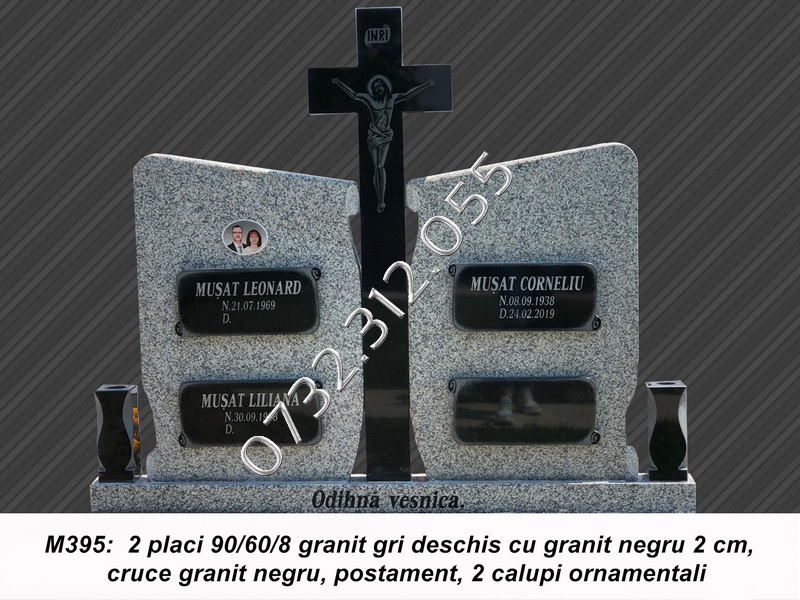• Cruci marmura sau cruci granit sunt compuse din placa/placi marmura sau granit, postament si doua vaze ornamentale.