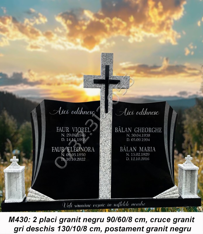 • Cruci marmura sau cruci granit sunt compuse din placa/placi marmura sau granit, postament si doua vaze ornamentale.