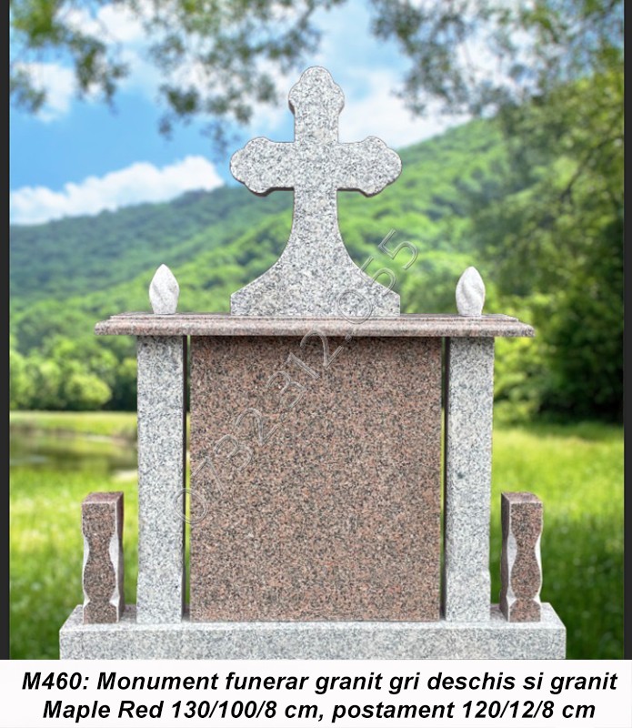 • monument funerar granit gri deschis si granit Maple Red 130 x 100 x 8 cm