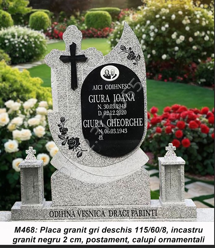 • Cruci marmura sau cruci granit sunt compuse din placa/placi marmura sau granit, postament si doua vaze ornamentale.
