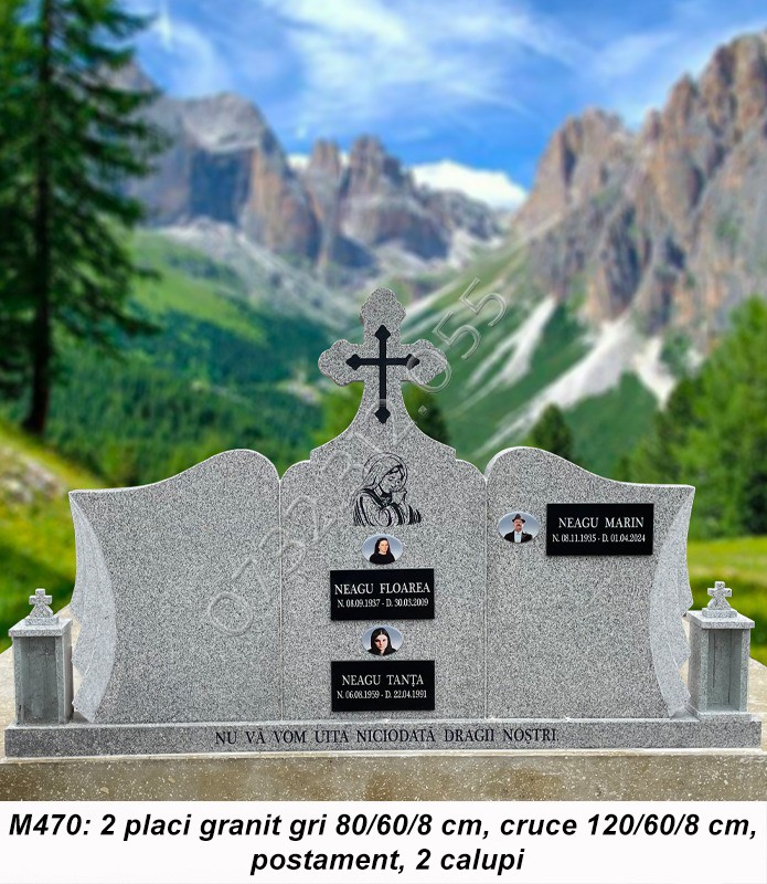 • Cruci marmura sau cruci granit sunt compuse din placa/placi marmura sau granit, postament si doua vaze ornamentale.